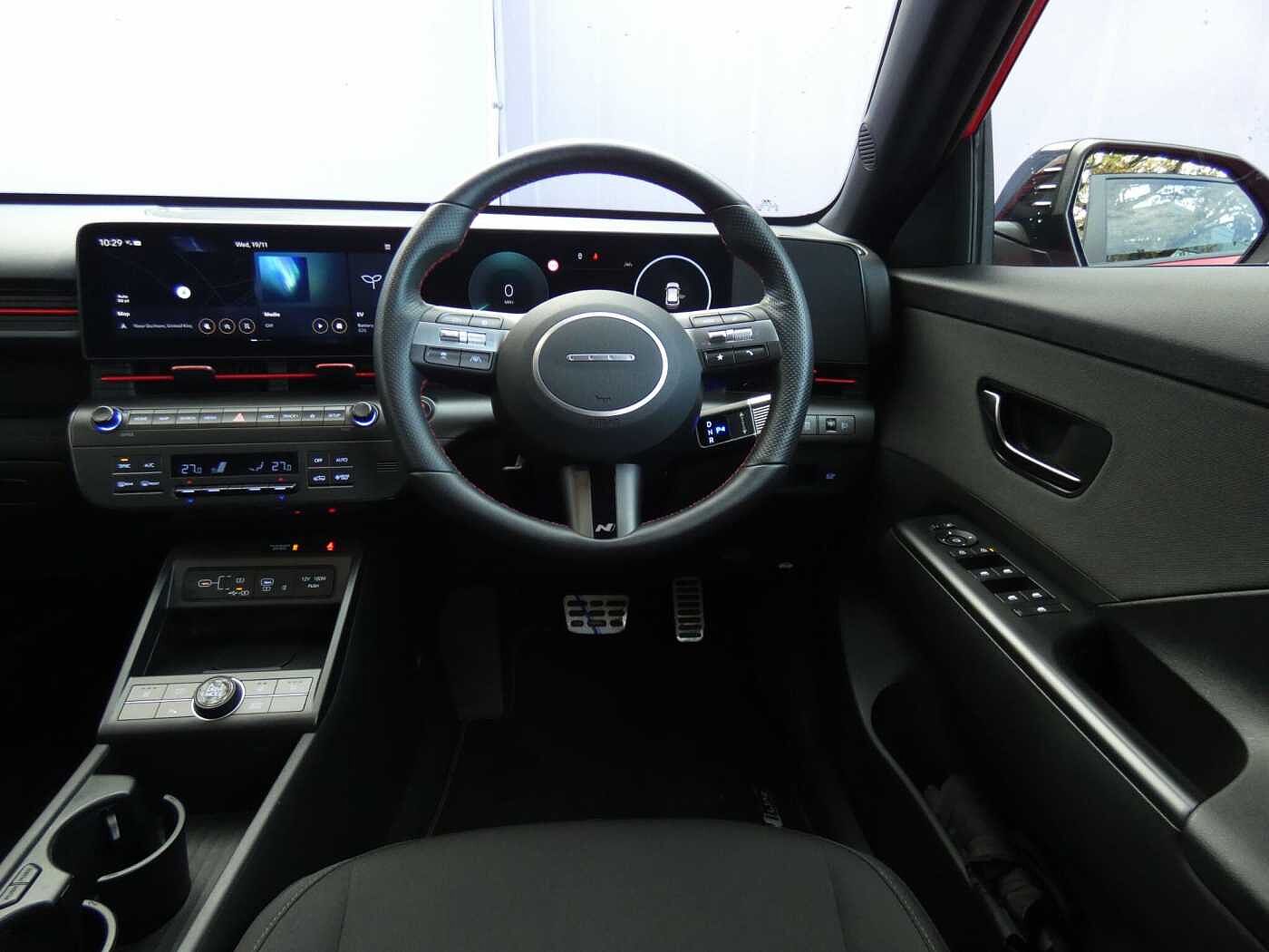 This 2025 Hyundai KONA N Line is a superb example, having had only one owner since new. This electric model boasts a substantial 73 kWh battery, offering a maximum range of 282 miles when new, ensuring you can travel further on a single charge. Recharging at home is convenient, taking approximately 8 hours and 53 minutes with a 7kW charger, while rapid public charging can take you from empty to 80% in just 46 minutes. Inside, you'll find a host of comfort and convenience features, including heated front and rear seats, dual zone climate control, and a smart key system for keyless entry and start. Parking is made easier with front and rear parking sensors. The Hyundai KONA N Line stands out with its impressive electric performance and thoughtful features. The generous battery capacity and extensive range mean this KONA offers a more practical driving experience compared to many other electric vehicles. The inclusion of heated seats for both front and rear passengers, along with dual zone climate control, ensures comfort for everyone on board, regardless of the weather. Furthermore, the keyless entry and start system, combined with front and rear parking sensors, contribute to a more seamless and stress free ownership experience, setting this KONA apart from its peers.